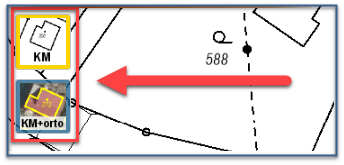 Základním mapovým podkladem je katastrální mapa, kterou lze zobrazit buď samostatně, nebo v kombinaci s ortogonalizovanými leteckými snímky (tzv. ortofotem). Změna výběru mapy se provede kliknutím na požadované tlačítko. Tlačítko aktuálně zobrazené mapy je označeno žlutou barvou.