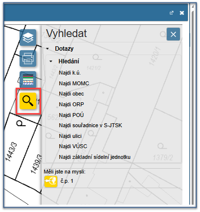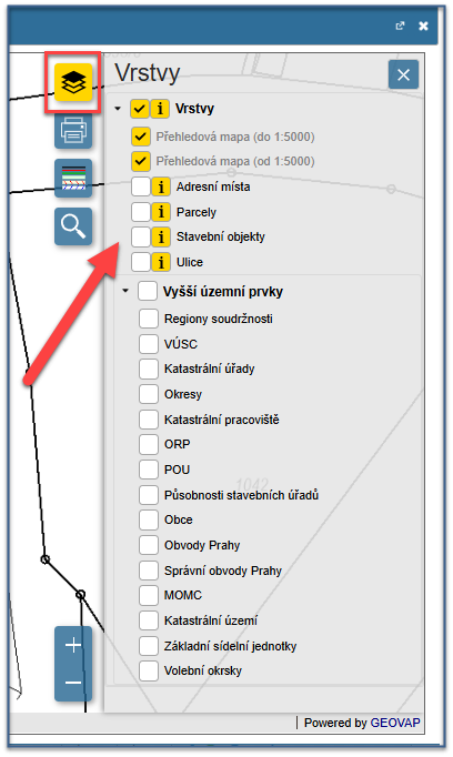 Nabídka vrstev se zviditelní kliknutím na ikonu