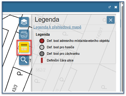 Bližší popis zobrazených prvků se nachází pod ikonou Legenda