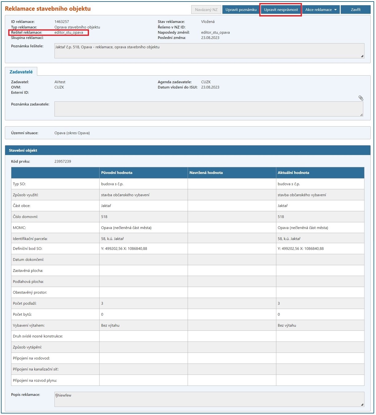 Editor může označit vybraný referenční údaj v ISÚI jako nesprávný v:
