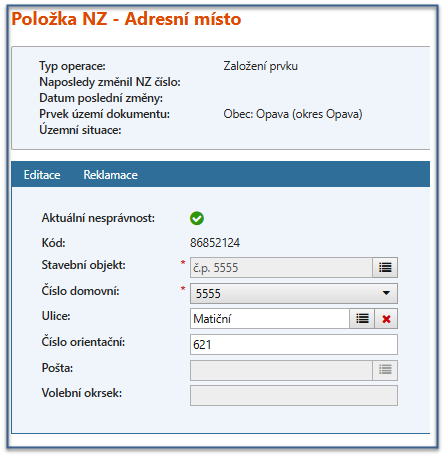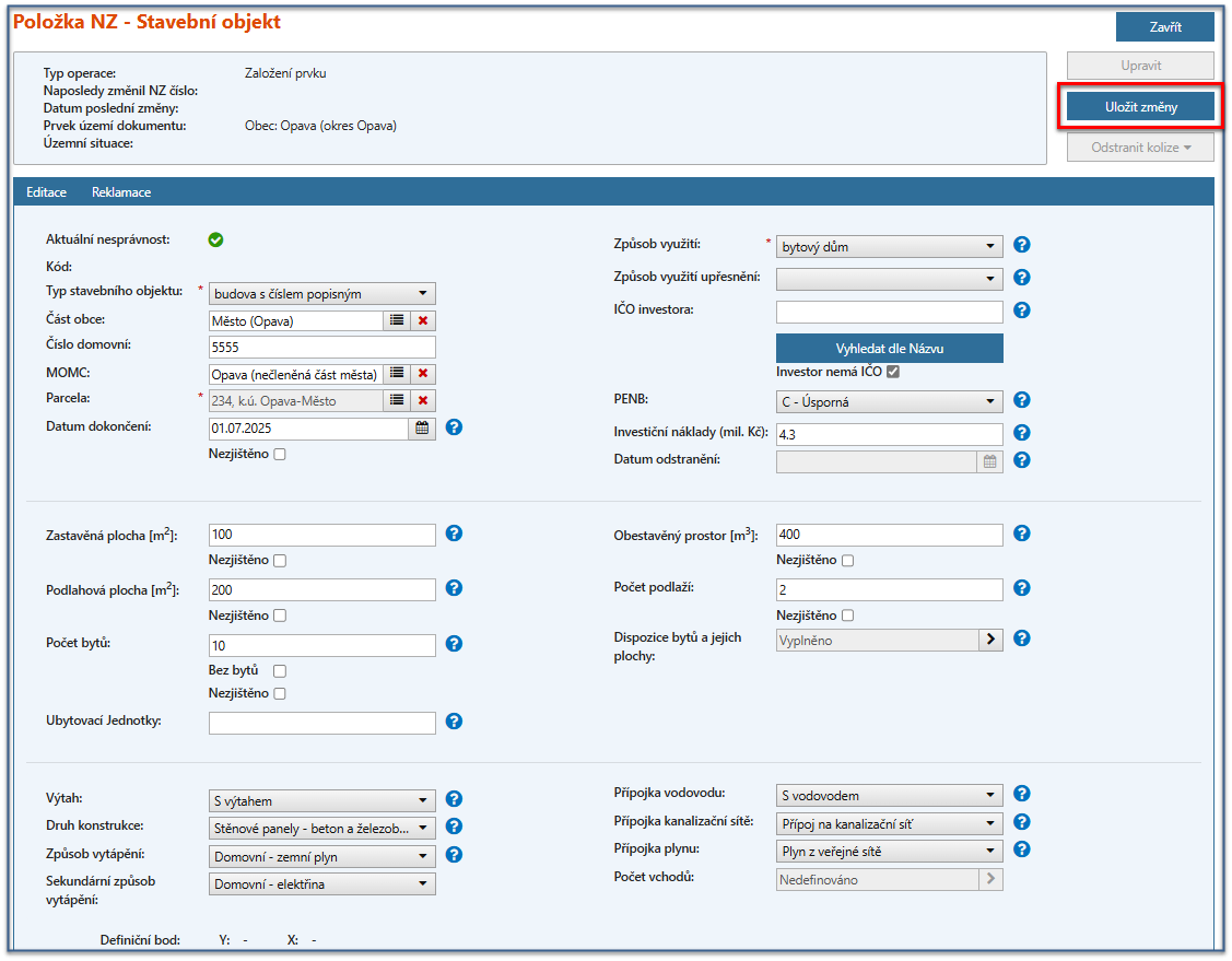 Povinné údaje a ostatní vyplněné položky aplikace ISÚI průběžně kontroluje. Více informací Založení prvku STAVEBNÍ OBJEKT a ADRESNÍ MÍSTO a Položka NZ - Stavební objekt [UNZ119]