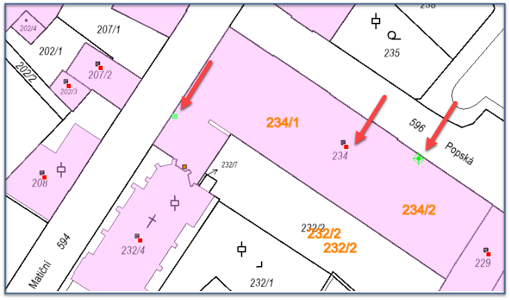 Následuje definice definičních bodů stavebního objektu a adresních míst. Více Založení prvku STAVEBNÍ OBJEKT a ADRESNÍ MÍSTO