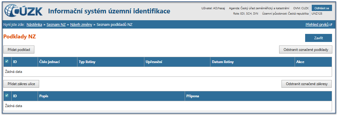 Po stisknutí tlačítka se zobrazí formulář pro přidání nového podkladu NZ Detail podkladu NZ [UNZ126]
